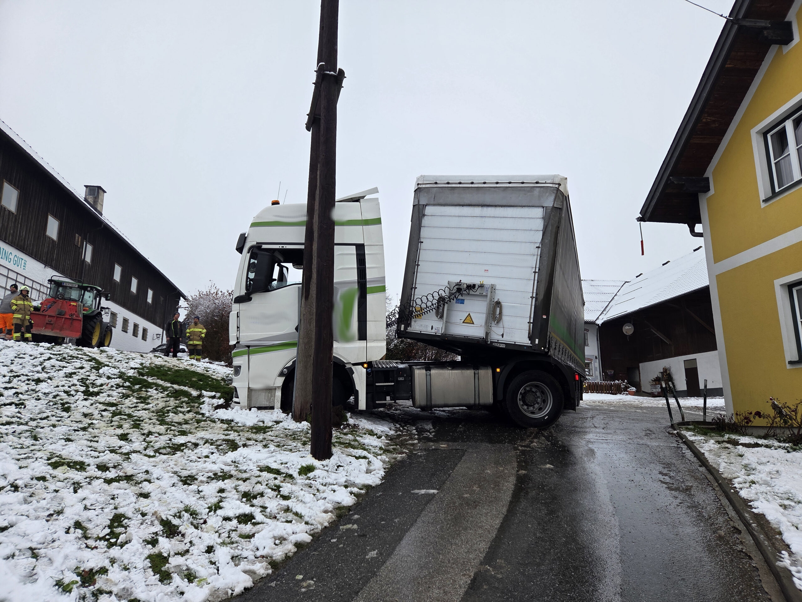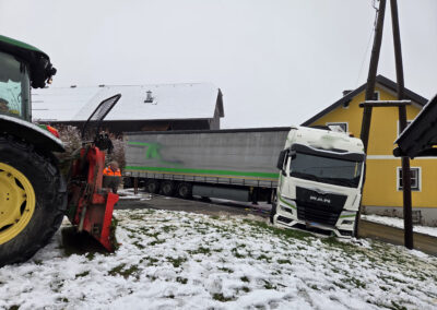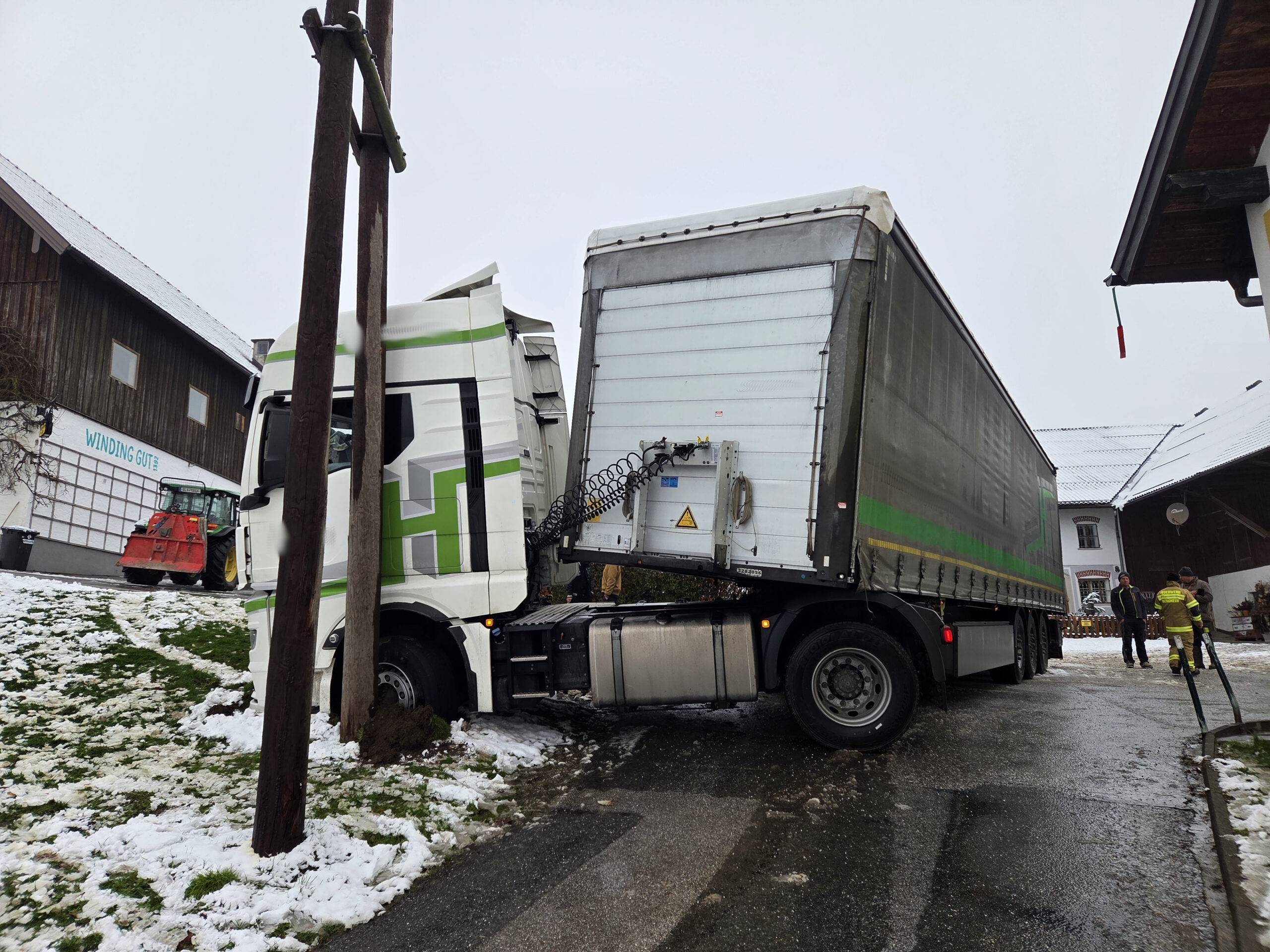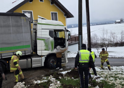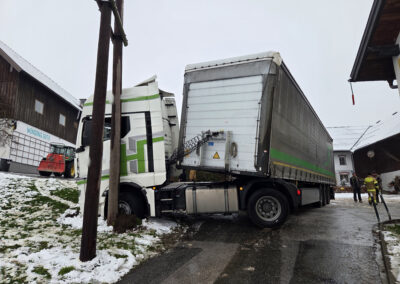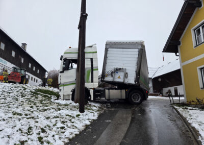 Zu einer LKW-Bergung bei der Winidingstrasse wurde die Freiwillige Feuerwehr Bergheim am 26. November 2025 alarmiert. Nach einer großräumigen Absperrung der Einsatzstelle wurde bei der Erkundung festgestellt, dass sich der LKW mit den Mitteln der Feuerwehr alleine nicht bergen lässt – es wurde Unterstützung durch die Fa. Pappas angefordert. Ebenfalls wurde Unterstützung durch 2 landwirtschaftliche Maschinen organisiert, um gemeinsam den LKW auf die Fahrbahn zurückzubringen. Da der LKW an einem Strommasten zu stehen kam, wurde aus Sicherheitsgründen die Salzburg AG verständigt die umgehend für die Dauer der Bergearbeiten eine Stromabschaltung durchführte.