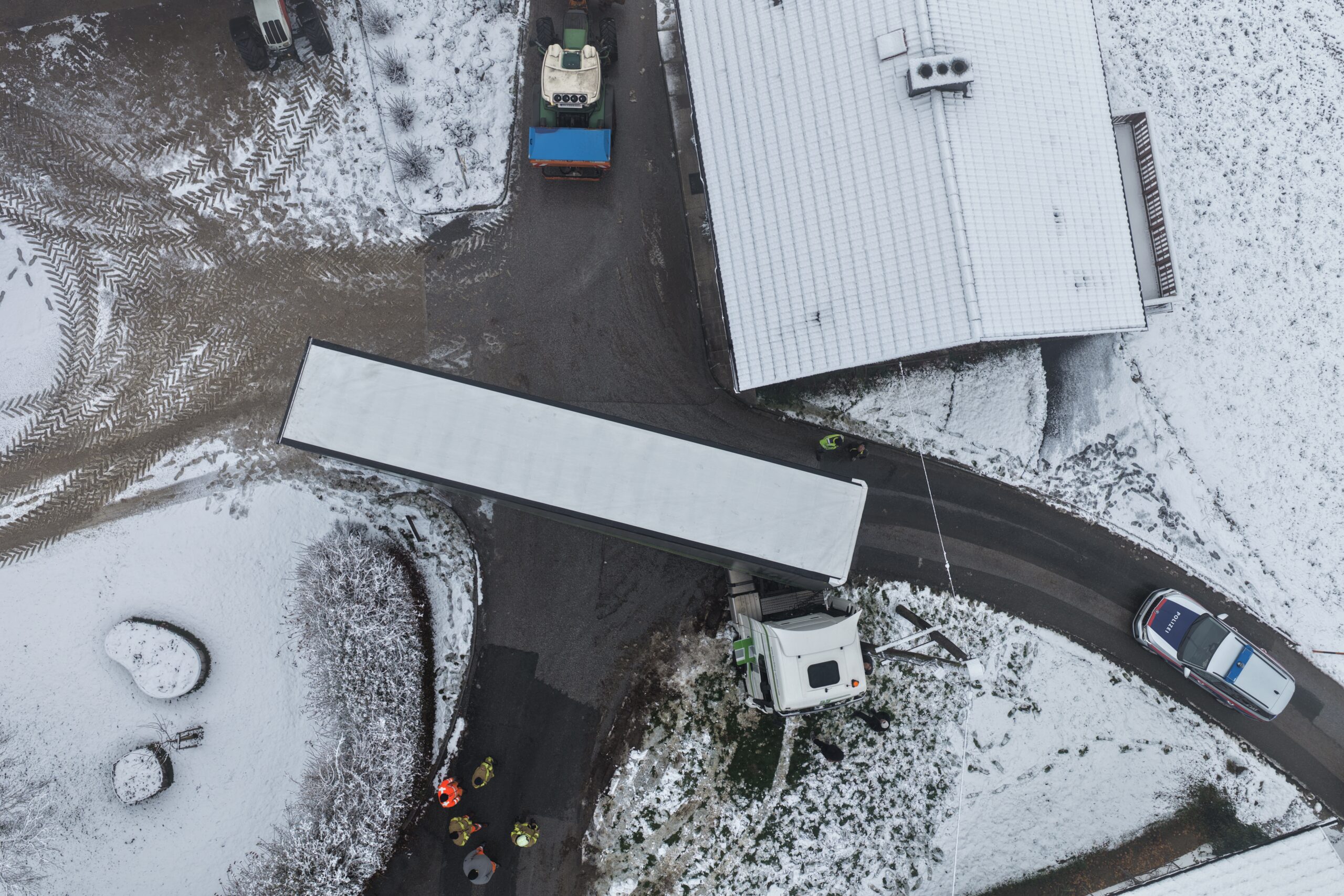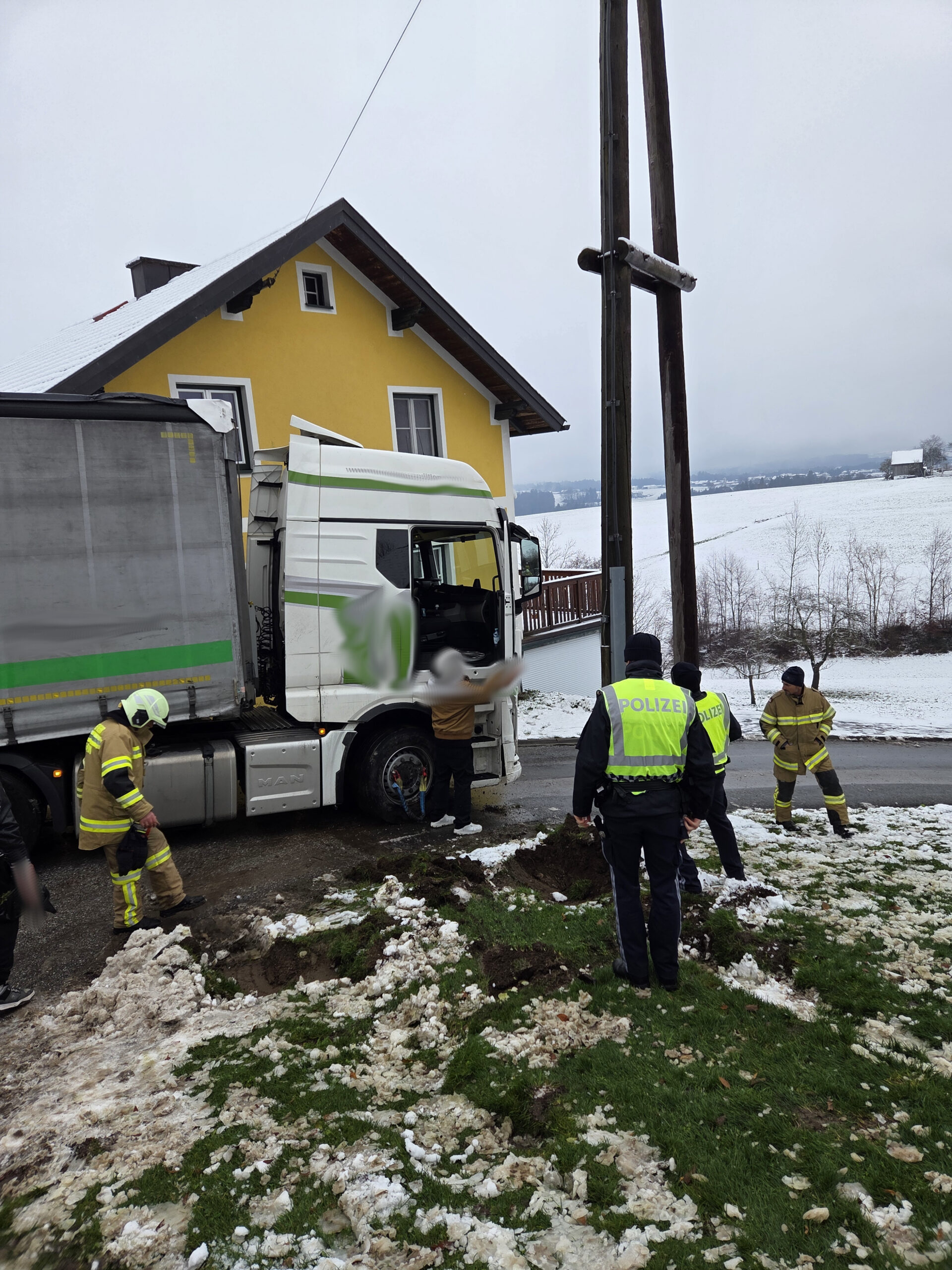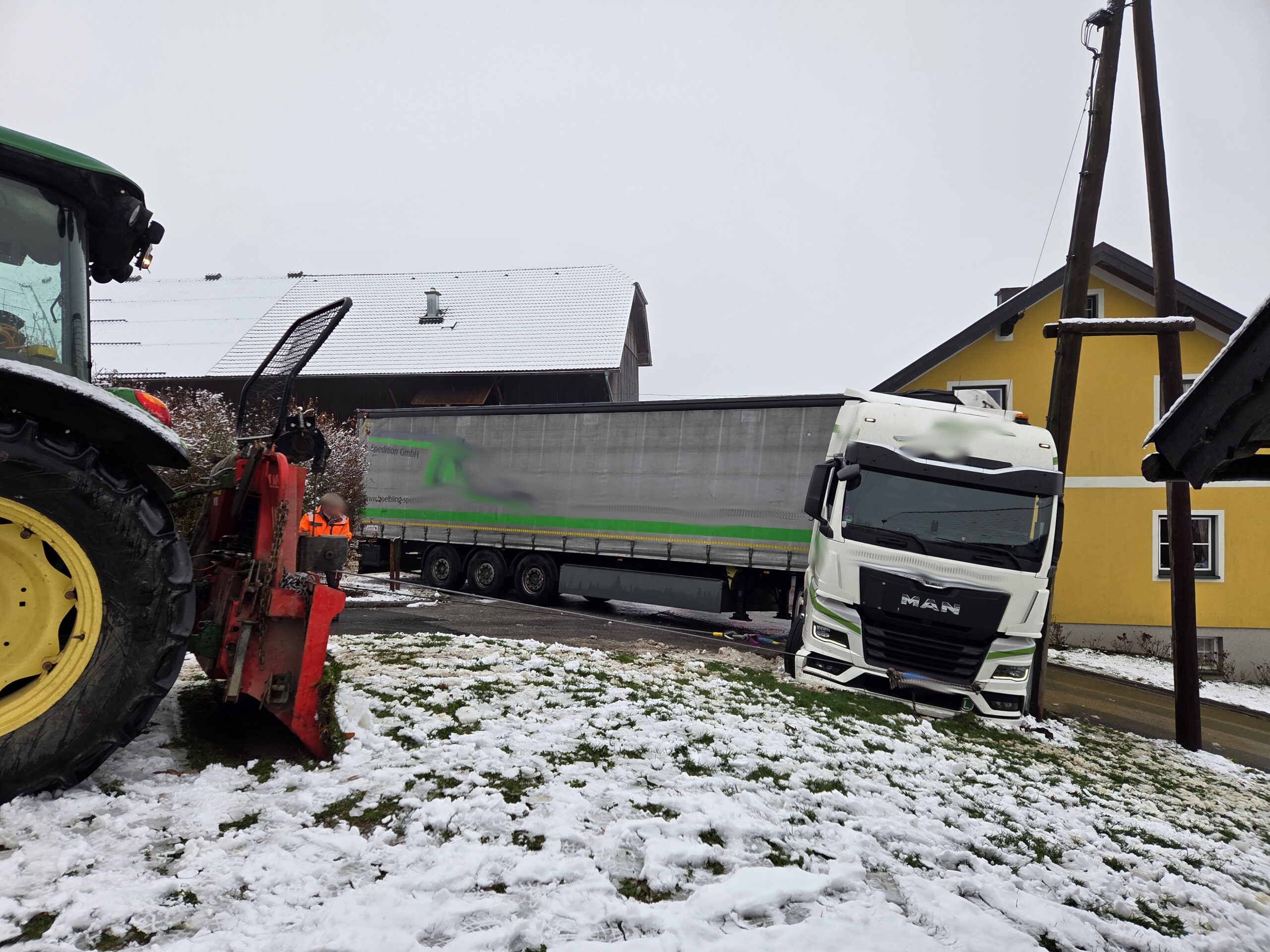 Zu einer LKW-Bergung bei der Winidingstrasse wurde die Freiwillige Feuerwehr Bergheim am 26. November 2025 alarmiert. Nach einer großräumigen Absperrung der Einsatzstelle wurde bei der Erkundung festgestellt, dass sich der LKW mit den Mitteln der Feuerwehr alleine nicht bergen lässt – es wurde Unterstützung durch die Fa. Pappas angefordert. Ebenfalls wurde Unterstützung durch 2 landwirtschaftliche Maschinen organisiert, um gemeinsam den LKW auf die Fahrbahn zurückzubringen. Da der LKW an einem Strommasten zu stehen kam, wurde aus Sicherheitsgründen die Salzburg AG verständigt die umgehend für die Dauer der Bergearbeiten eine Stromabschaltung durchführte.
