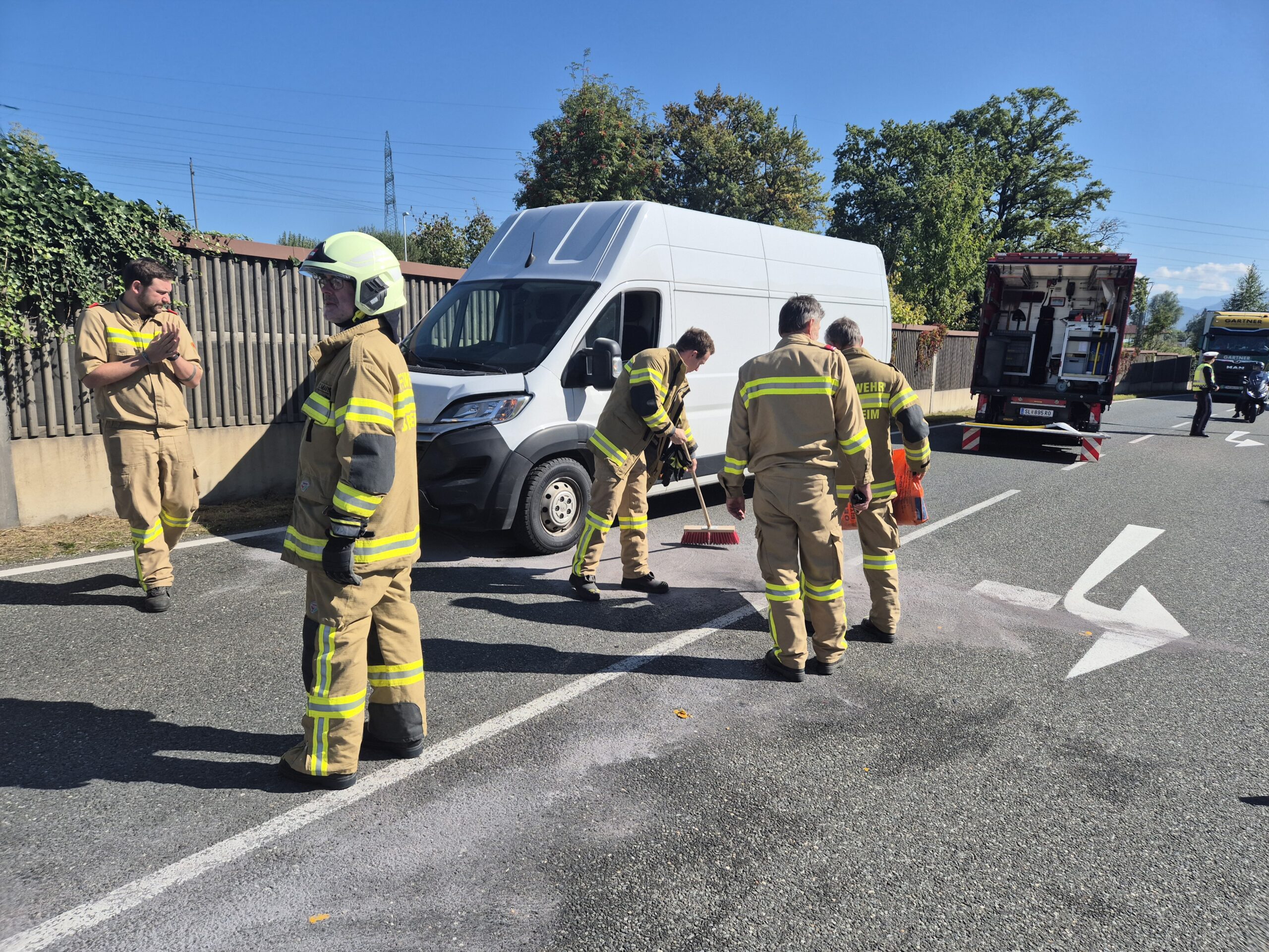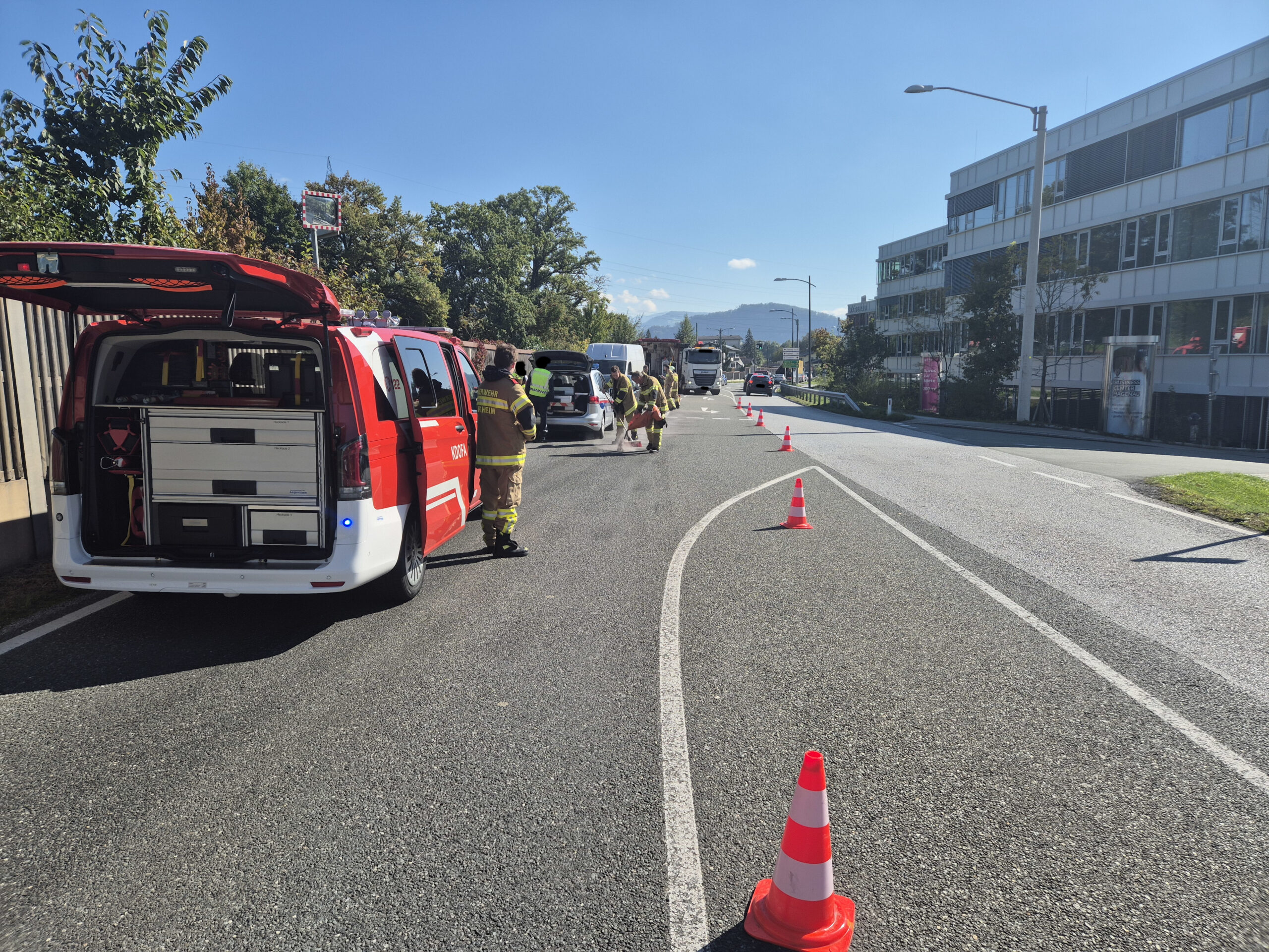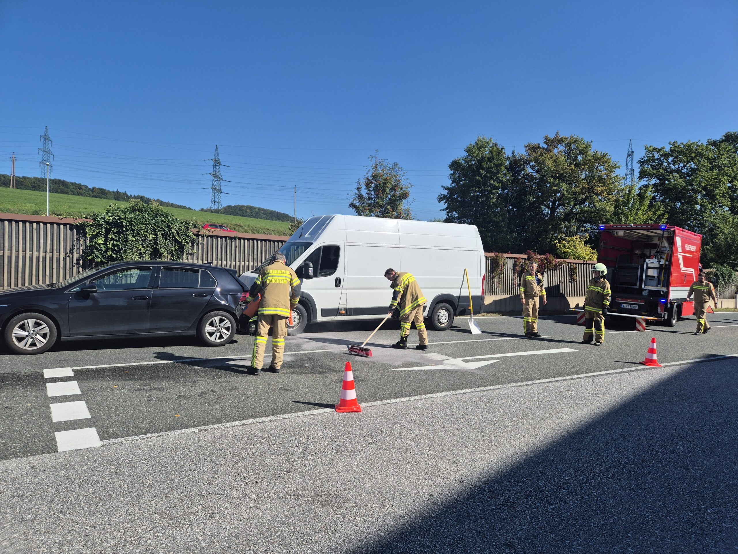 Zu Binde- und Aufräumarbeiten nach einem Verkehrsunfall auf der L-118 (Oberndorfer Straße) wurde die Freiwillige Feuerwehr Bergheim am 3. Oktober 2025 alarmiert. Nach dem Binden der ausgelaufenen Betriebsstoffe und dem Räumen der Unfallstelle konnte der Einsatz beendet werden. Für die Dauer der Arbeiten war die L-118 nur einspurig befahrbar.